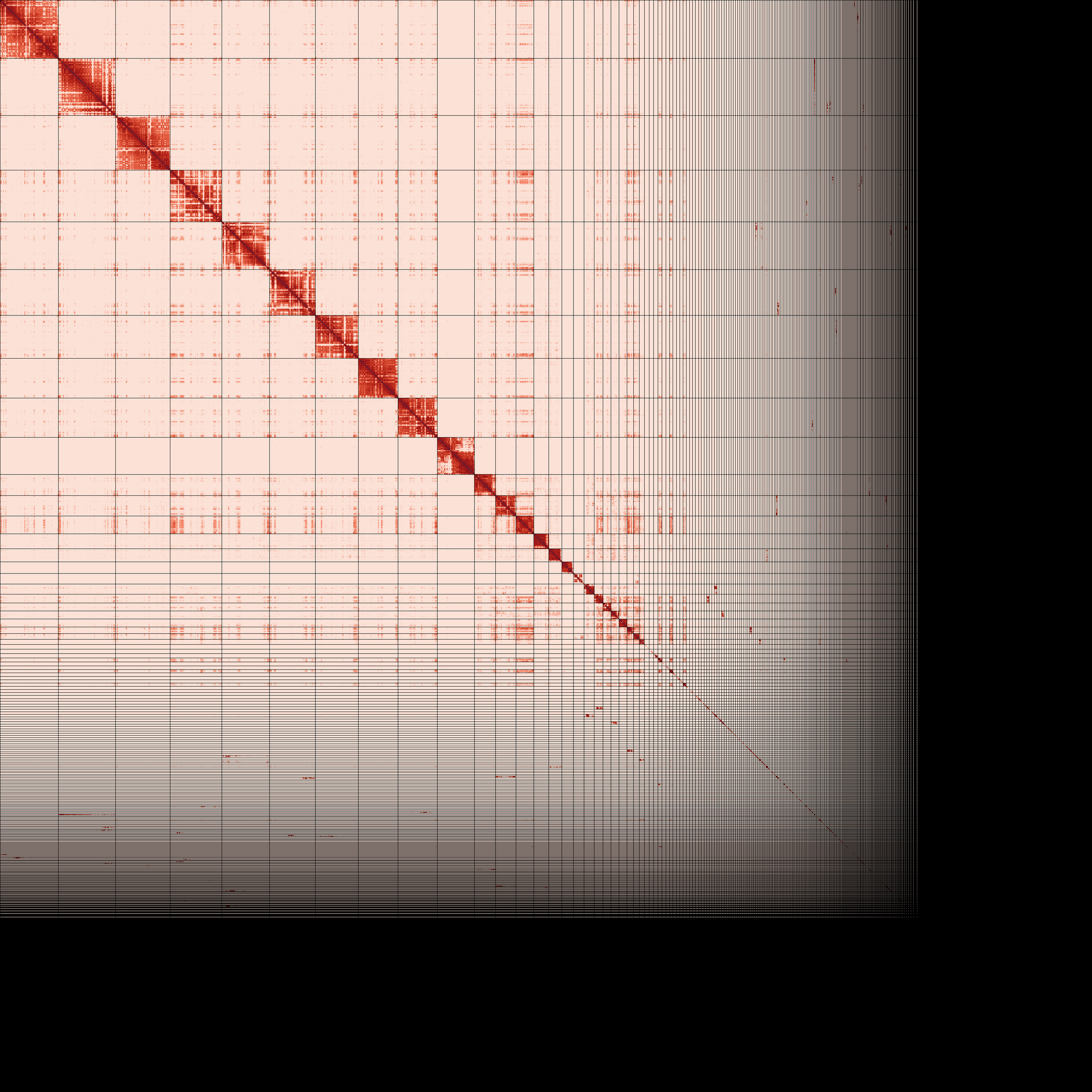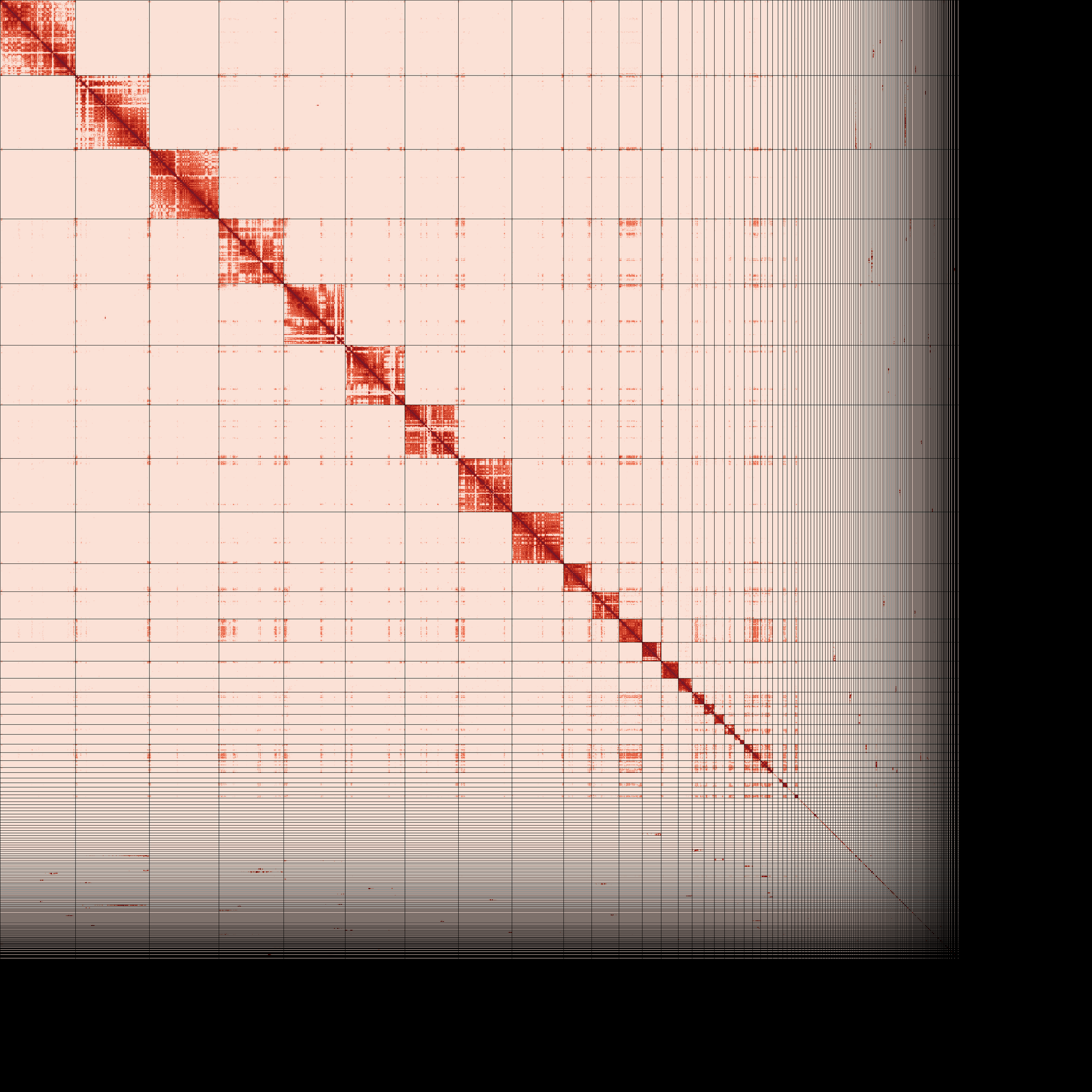 Primary and alternate assembly contiguous linear arrangement visualized as Omni-C contact maps (PreTextSnapShot). Darker areas represent regions of the genome that are close to each other in 3D space as identified by chromatin-proximity sequencing.