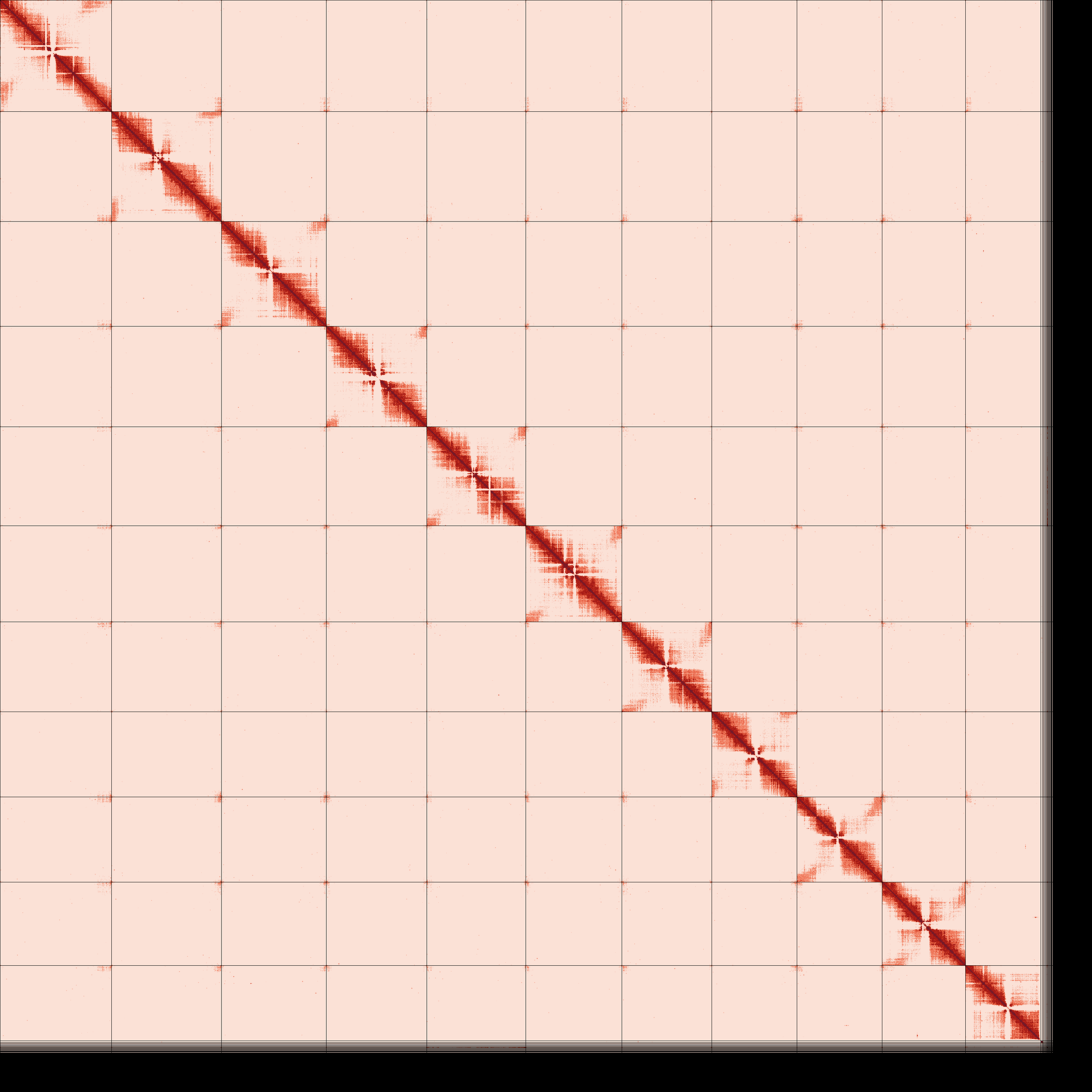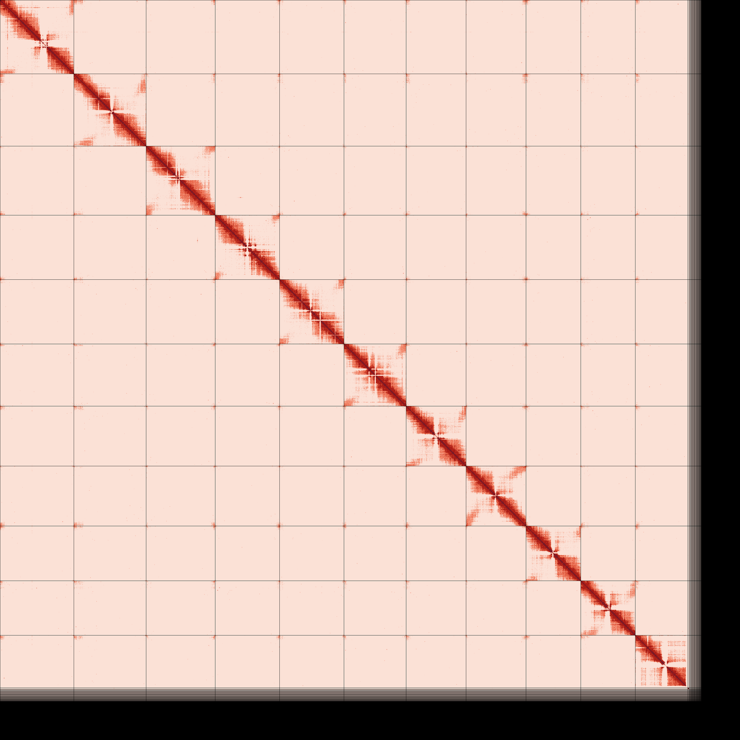 Contact maps for the primary and alternate genome assembly generated with PretextSnapshot. Contact maps translate proximity of genomic regions in 3-D space to contiguous linear organization. Each cell in the contact map corresponds to sequencing data supporting the linkage (or join) between two of such regions. Scaffolds are separated by black lines and higher density corresponds to higher levels of fragmentation.