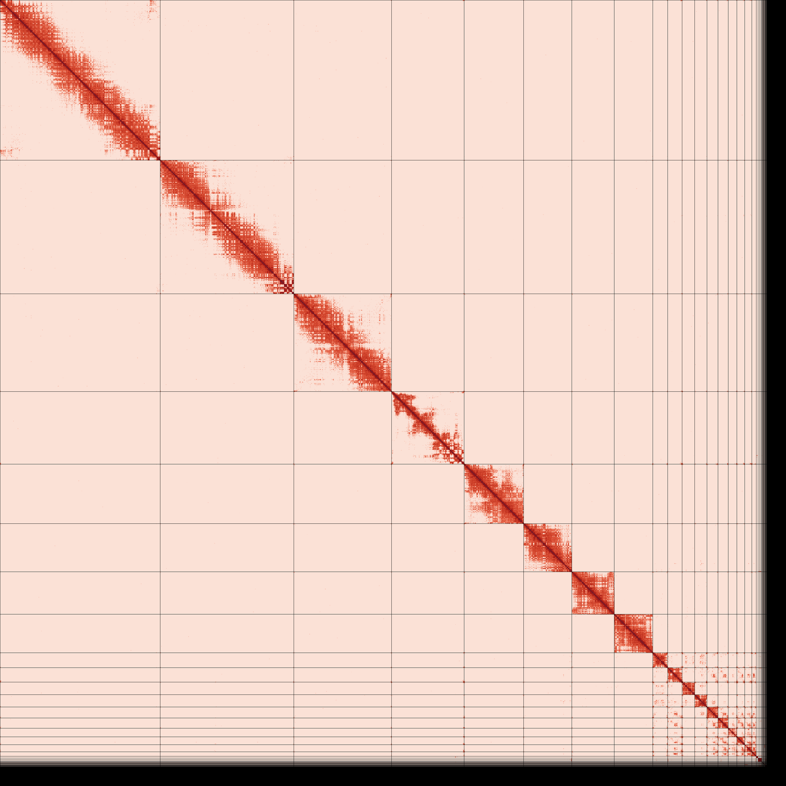 Contact maps for the primary and alternate genome assembly generated with PretextSnapshot. Contact maps translate proximity of genomic regions in 3-D space to contiguous linear organization. Each cell in the contact map corresponds to sequencing data supporting the linkage (or join) between two of such regions. Scaffolds are separated by black lines and higher density corresponds to higher levels of fragmentation.