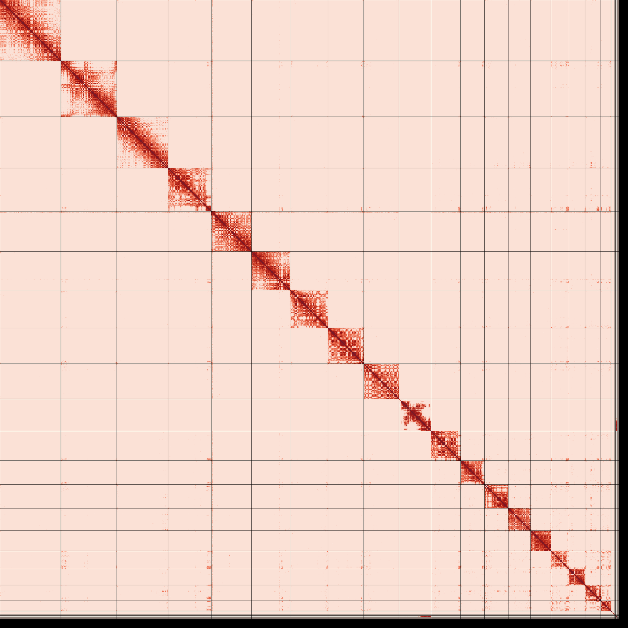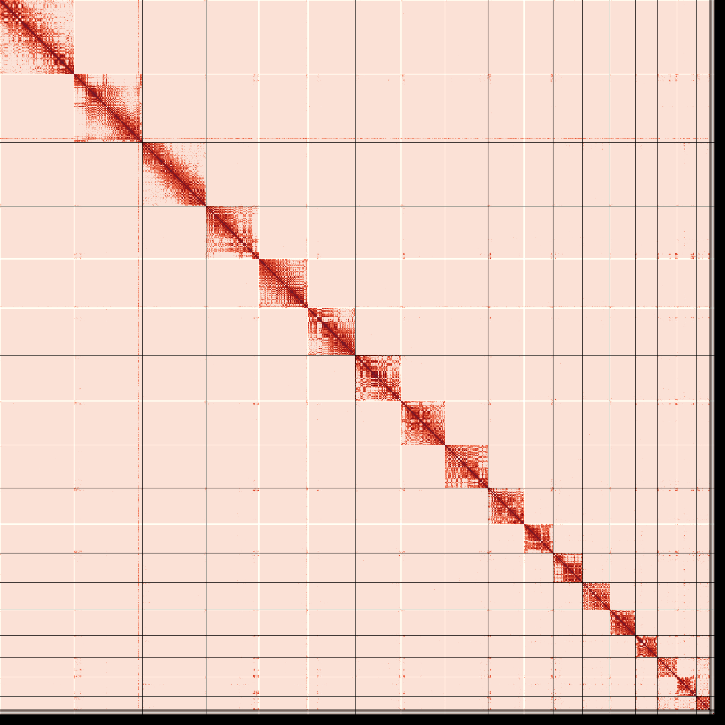 Omni-C contact map for the primary and alternate assemblies after manual curation shows the 3D organization of the genome, with darker areas indicating closer proximity.